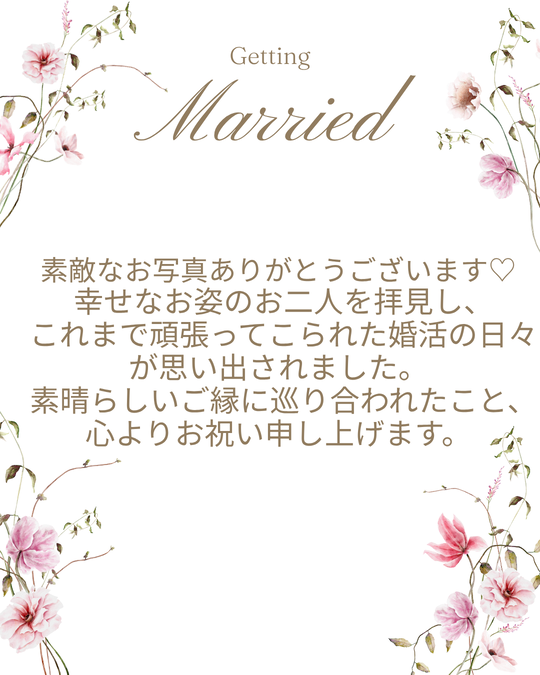などを簡潔にまとめた顔合わせ用の栞があると、とてもスムーズです。今回は、ご本人の気持ちやご家族のご意向も伺いながら、文章や構成やデザインなど細部にわたって一緒に考えさせていただきました。退会された後もこうしてご相談いただけるのは、私たちにとっても大変嬉しいことです。結婚相談所としてのサポートは一区切りかもしれませんが、ご縁が続いていくことで、より深い信頼関係が築けると感じています。